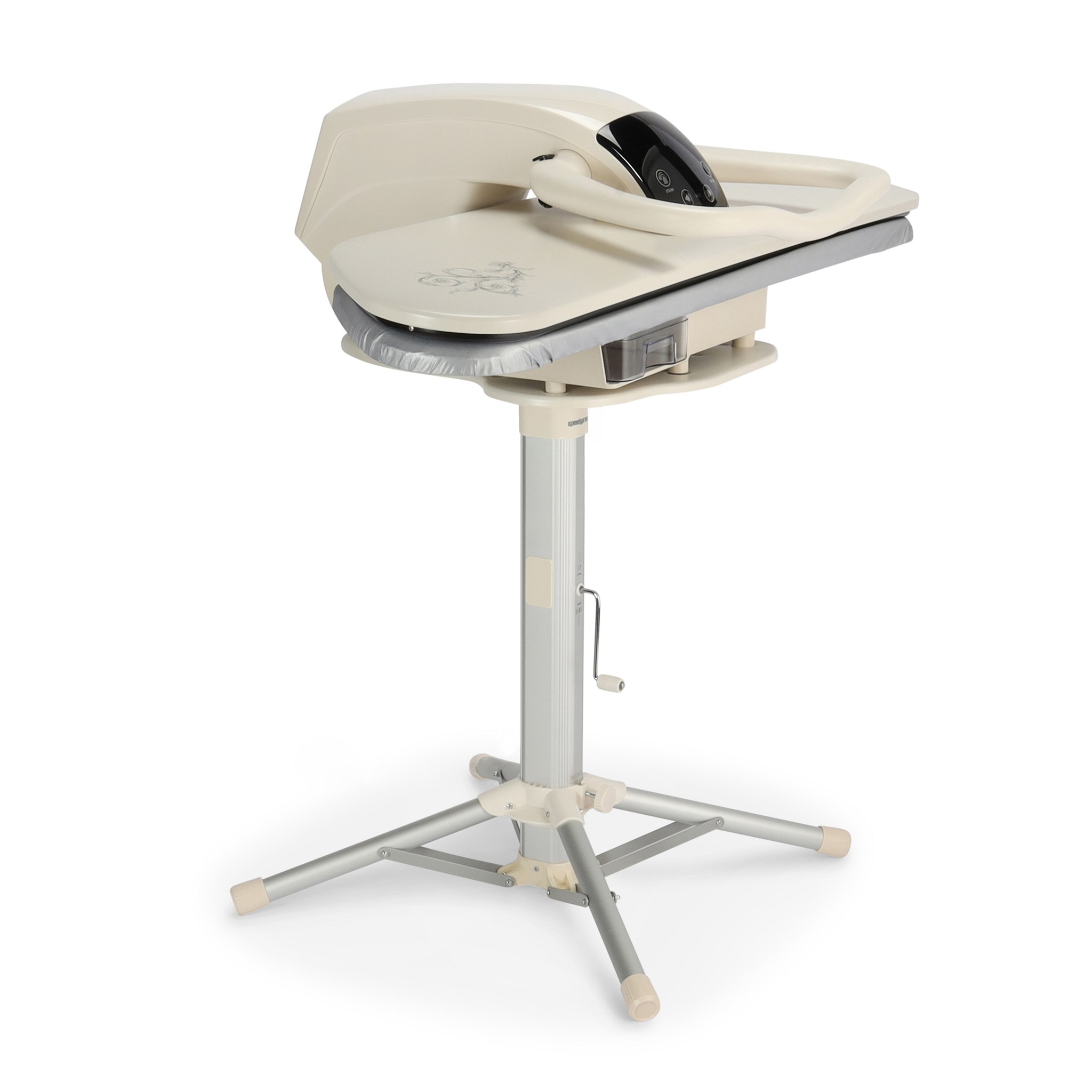 The ironing press is designed to be used sitting down - ironing is a lot more comfortable that way. However all of our HD ironing presses are available to purchase with Telescopic Height-Adjustable Extra Strong Ironing Press Stands as well.