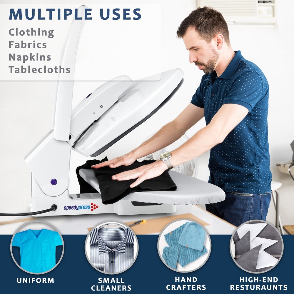 Can reduce ironing time by 60% compared with a standard sized ironing press.