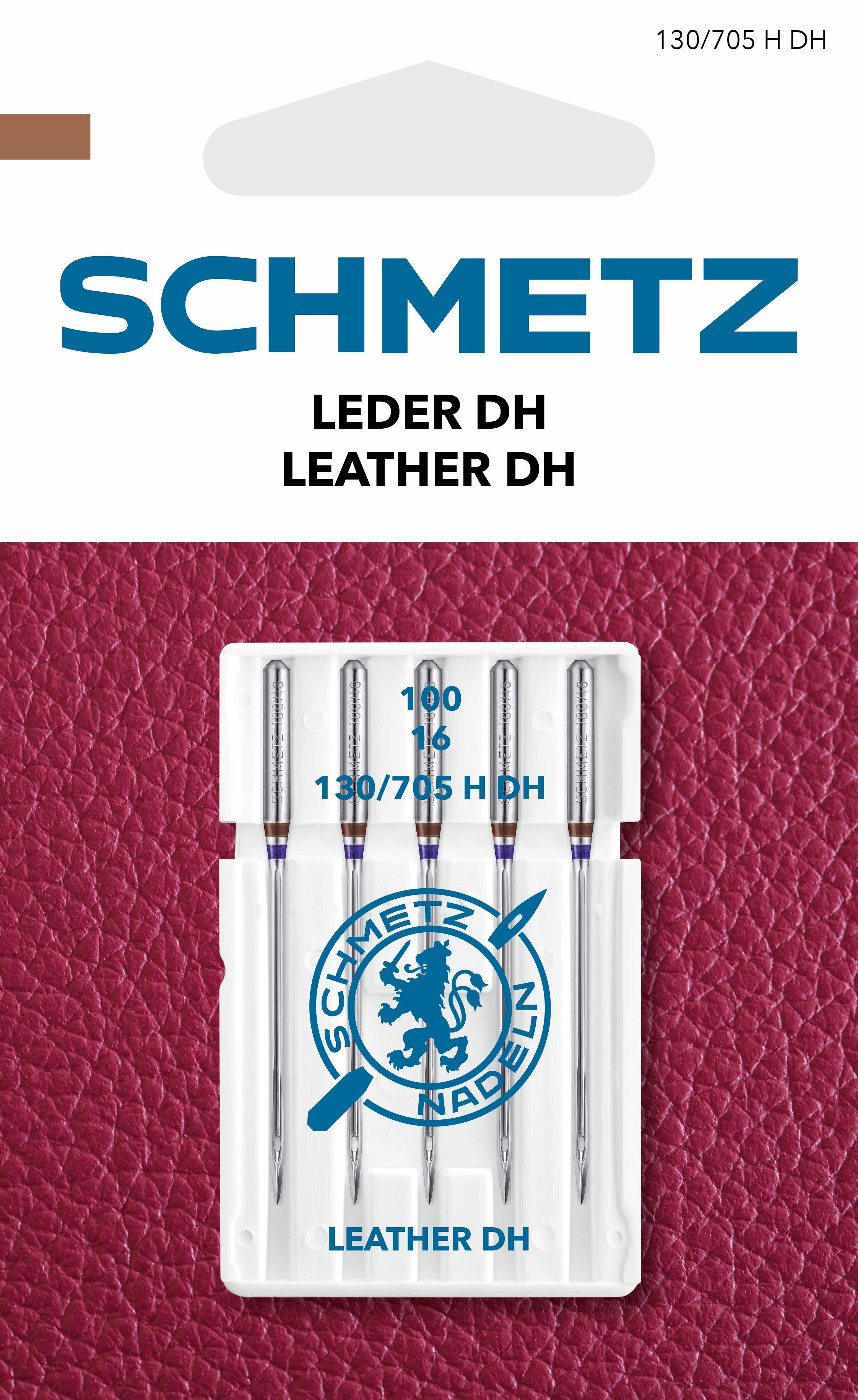 Leather DH needles with a cutting point DH (= half triangular point) for easier penetration; for straight seams on leather, hard synthetic leather or similar materials. Not suitable for woven or knitted fabrics.