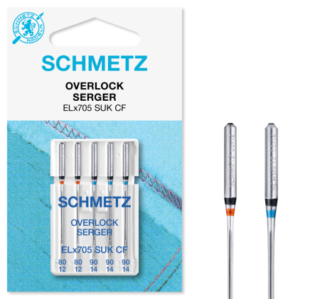 Special sewing machines like overlock and coverlock machines often require special needle systems such as the ELx705 SUK CF. These unique needles are adapted to the requirements of the respective model and are not interchangeable with other household or overlock needles.