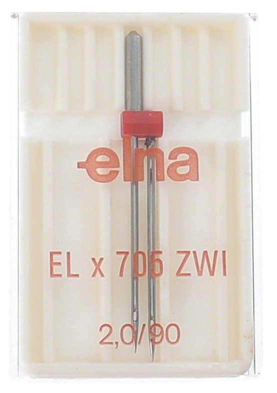 Elna lock overlock / serger twin ELx705 ZWI / ELZ-90 flat bottom double sewing machine needle, size 2.0/90 by Schmetz.