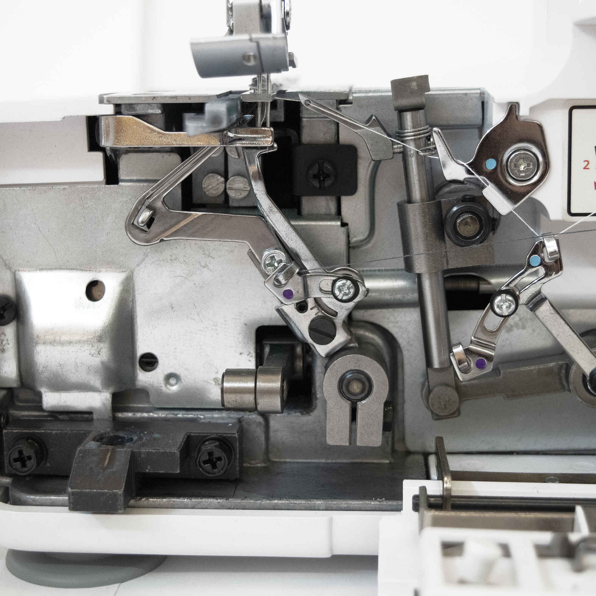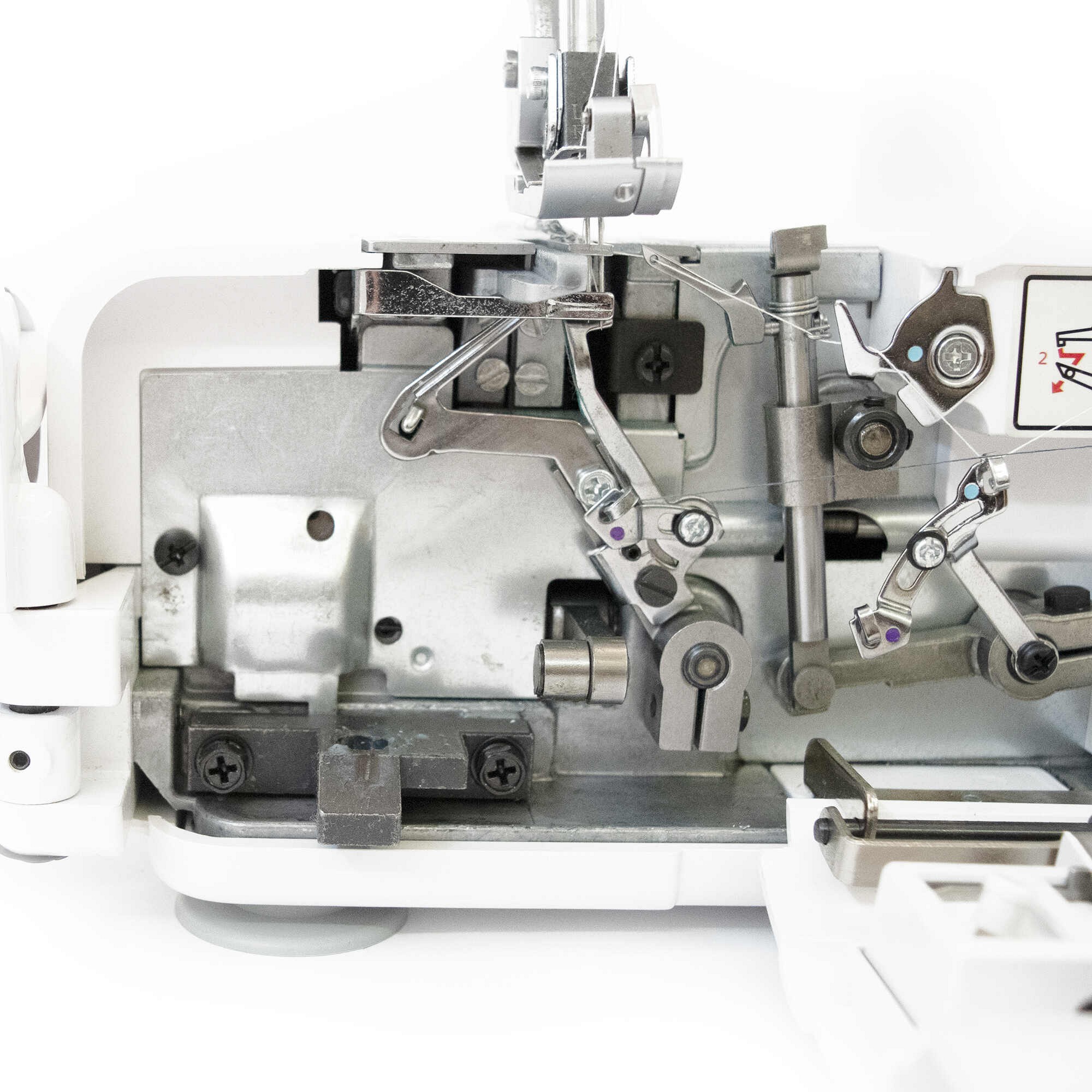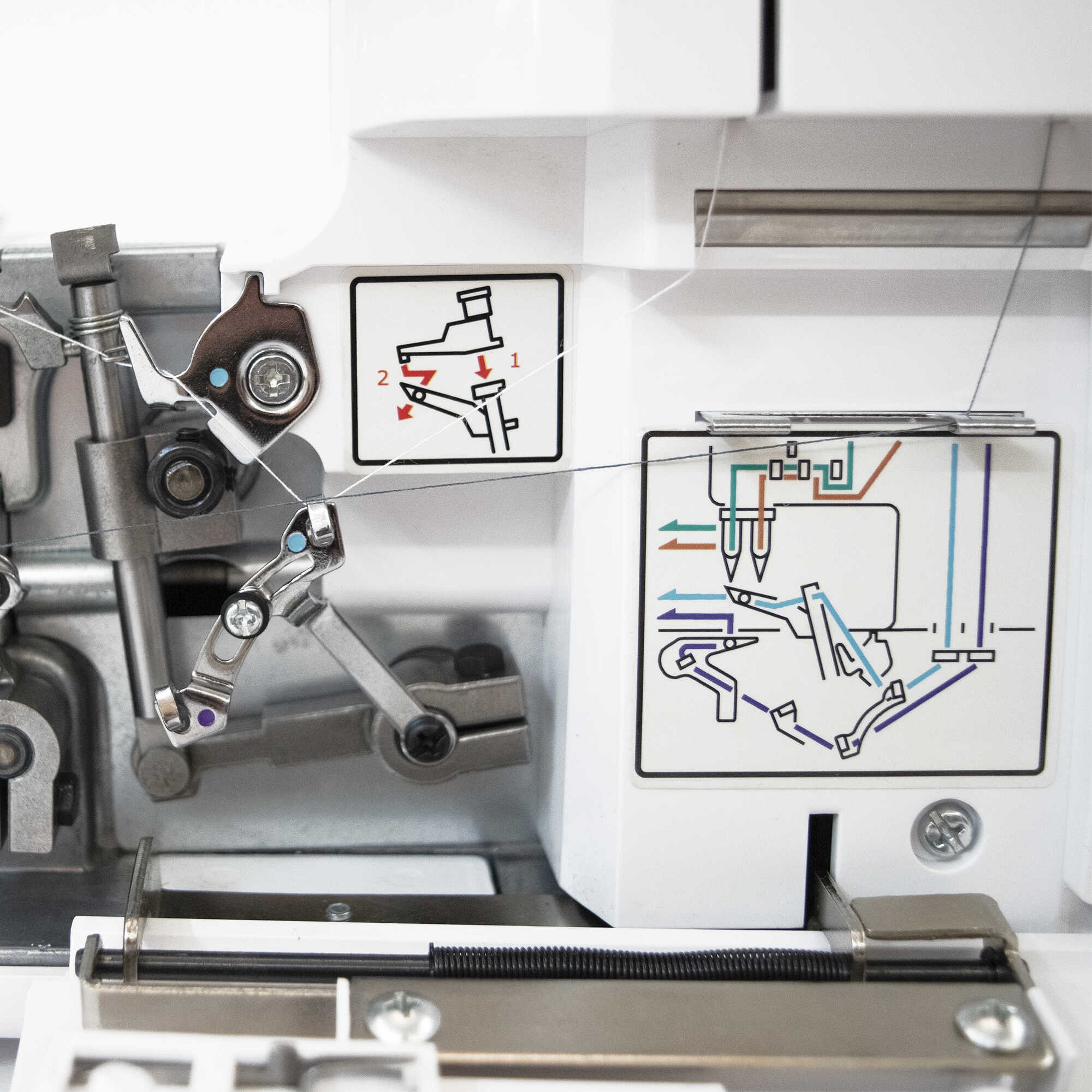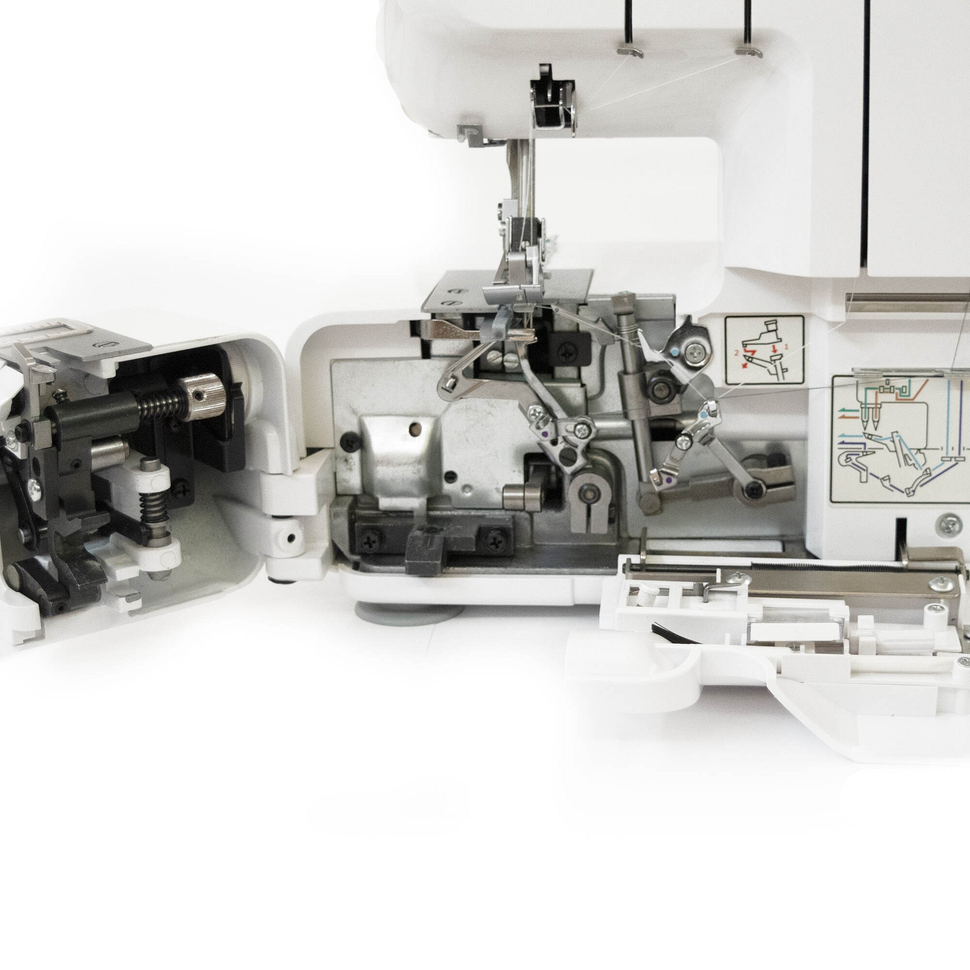 Everything you need to convert the overlocker to the different stitch variants is located on the inside of the drop-down front.