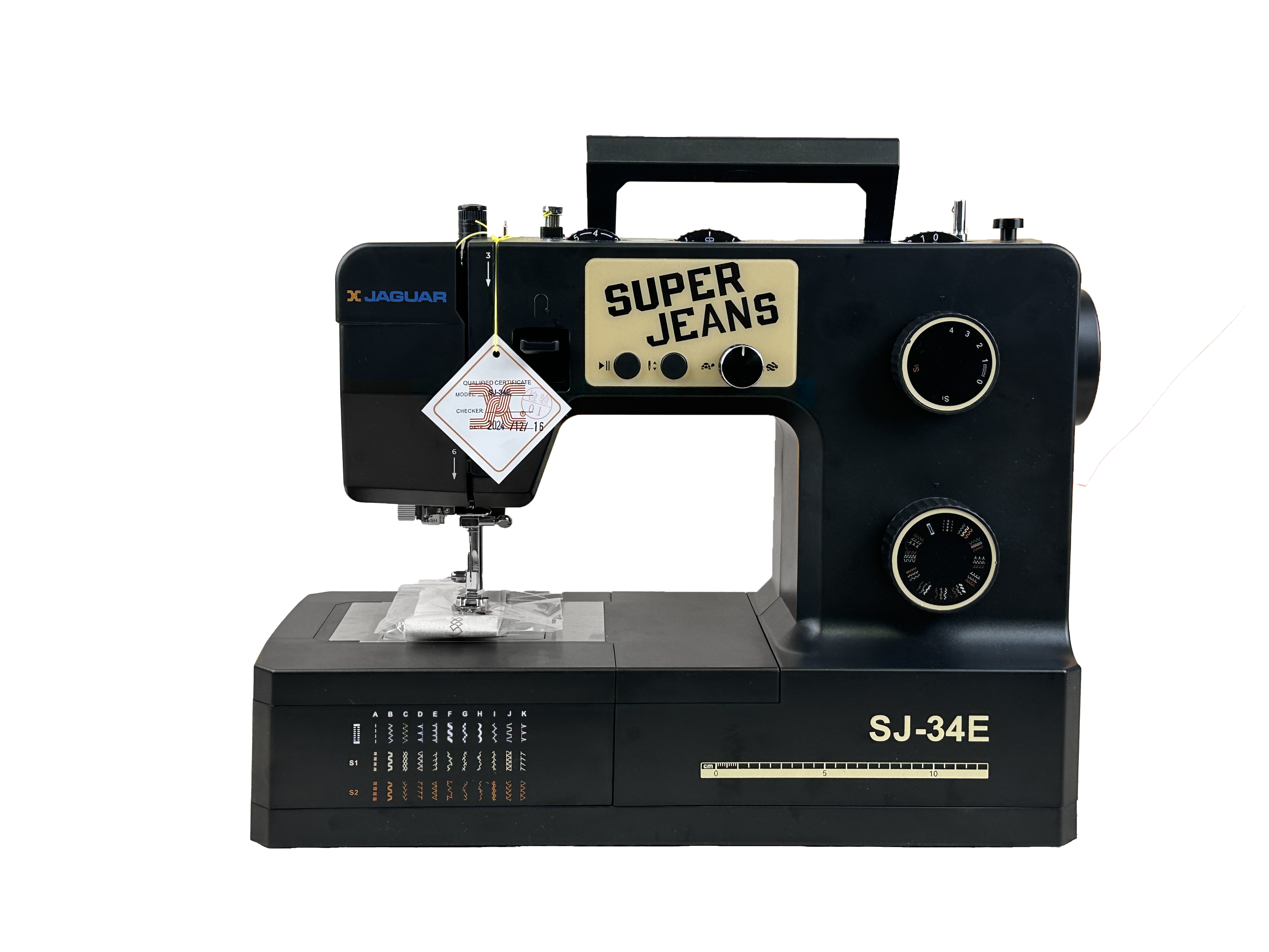 The Jaguar SJ-34E Super Jeans Series is a heavy-duty electric sewing machine, designed for durability and precision, making it an excellent choice for both beginners and experienced professionals. Built to handle a variety of fabrics, including thick materials like denim, canvas, and upholstery, this machine delivers smooth, high-quality stitches every time. Whether you're working on home projects, clothing alterations, or professional-grade sewing, the SJ-34E provides the power, speed, and versatility needed for an efficient and seamless sewing experience.