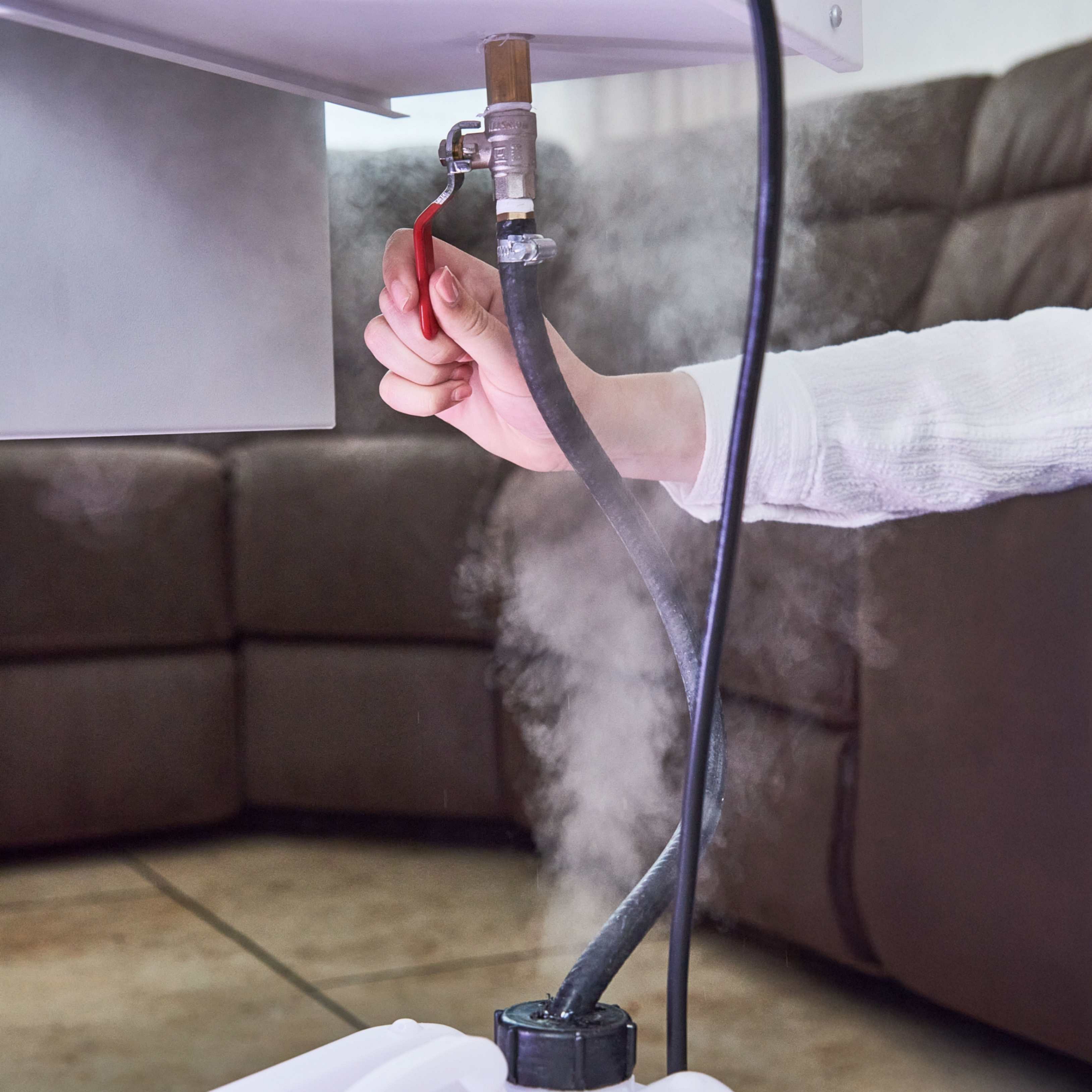 The bottle below is for safely blowing down the boiler, collecting all the waste water and any limescale that blows out under high pressure.