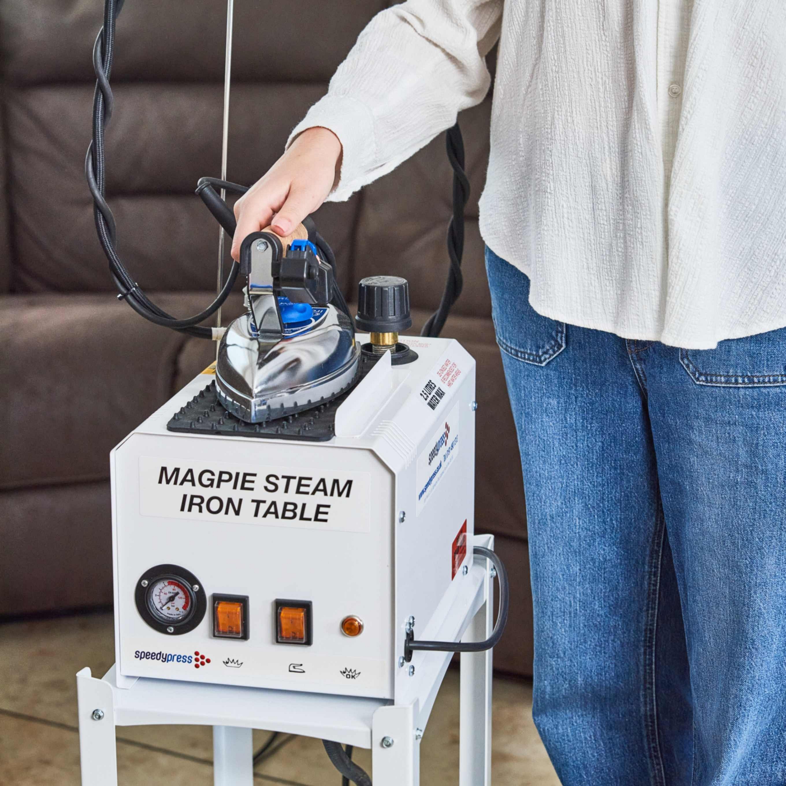 This Magpie System comes complete with: Magpie Ironing Boiler. Magpie Steam Iron. Draining Blow-Down Bottle. American Teflon Iron Shoe.