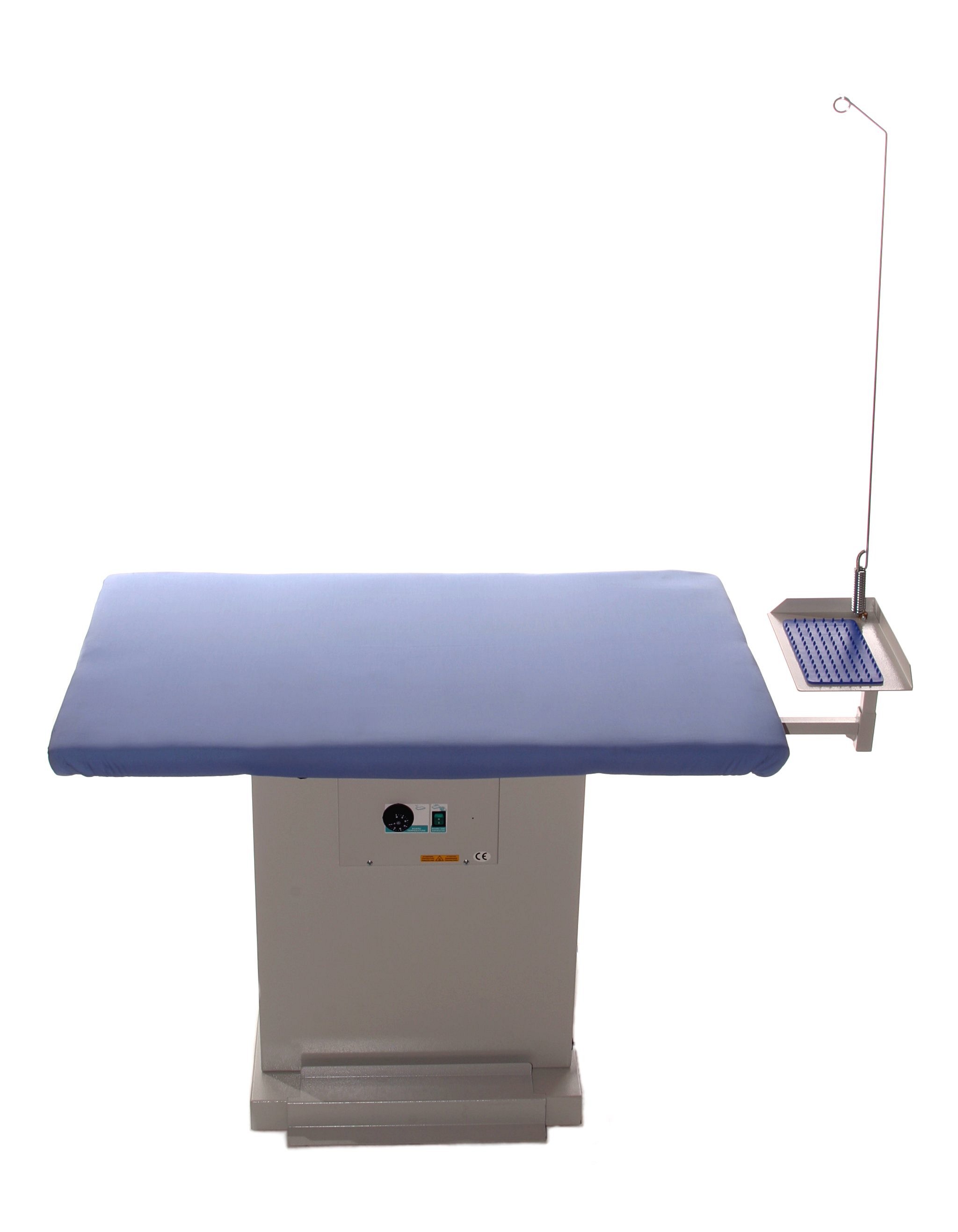 Turbo vacuum and thermostatically heated ironing table for industrial / commercial use.